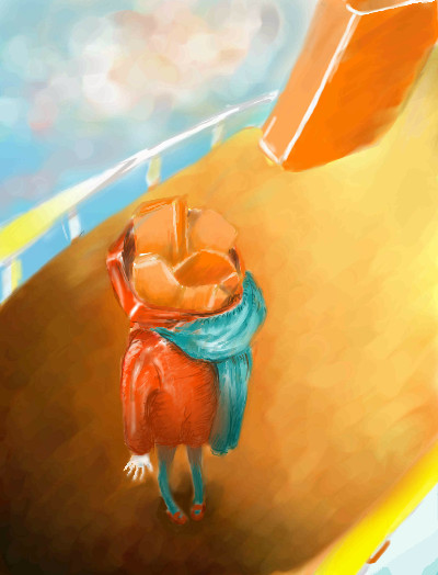 This is sweet, it gives me the impression she is high up in the sky on a platform.