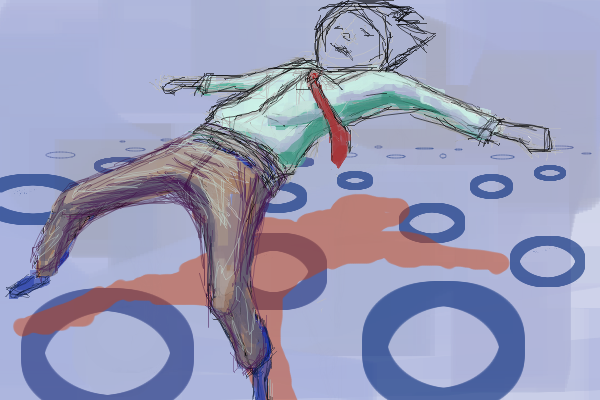 I like this one out of the three I saw out of your gallery. The perspective, the clothing, and the hair all make the impression that he's falling.