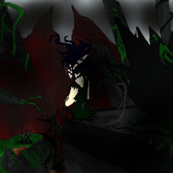 goddammit, i had just finished coloring the guy and the vines and my computer crashed, putting in layers now and coming back later to finish up