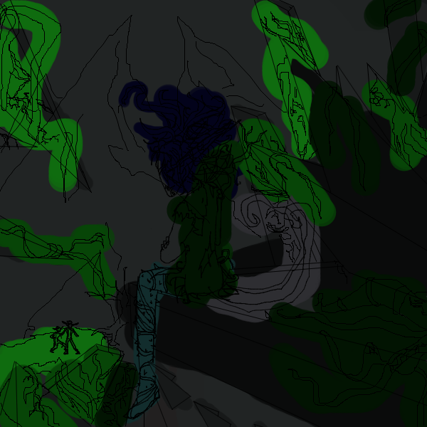 goddammit, i had just finished coloring the guy and the vines and my computer crashed, putting in layers now and coming back later to finish up
