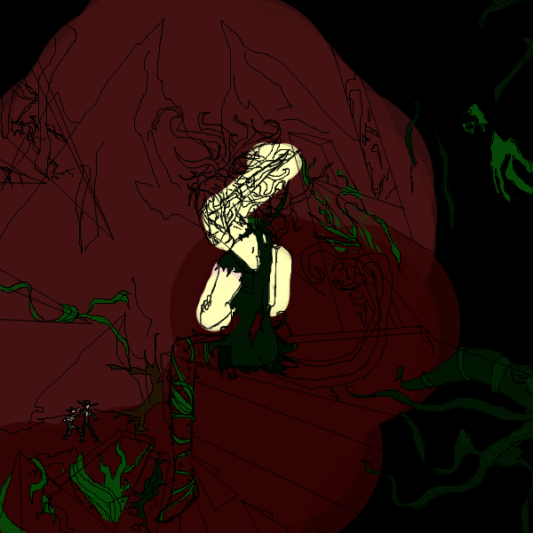 goddammit, i had just finished coloring the guy and the vines and my computer crashed, putting in layers now and coming back later to finish up