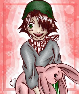 hehe the bunny is huggably adorable. I really like the bg, & all the pink-ness ^.^