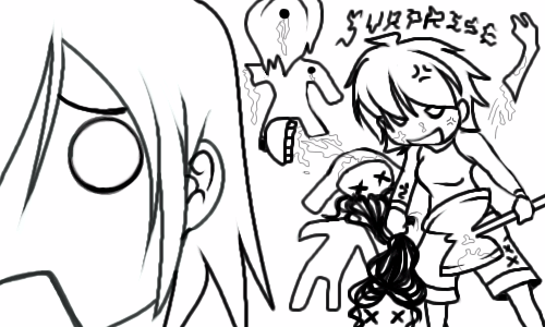 Haha, Me and my boyfriend were talking about me ending him with a meat tenderizer a.k.a (battle axe) and then he wanted me to draw something like that. Its so funny to look at xDHes gonna love it, I just know it.