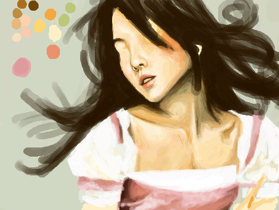 She's beautiful. Wonderful use of colors and such a nice sense of movement with the pose and the hair.