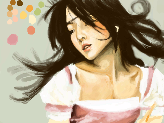 She's beautiful. Wonderful use of colors and such a nice sense of movement with the pose and the hair.