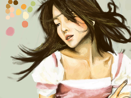 She's beautiful. Wonderful use of colors and such a nice sense of movement with the pose and the hair.