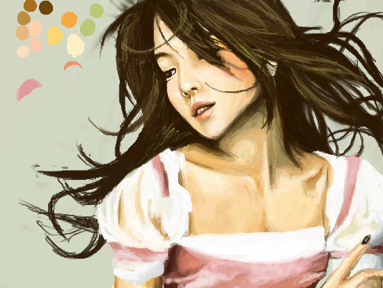 She's beautiful. Wonderful use of colors and such a nice sense of movement with the pose and the hair.