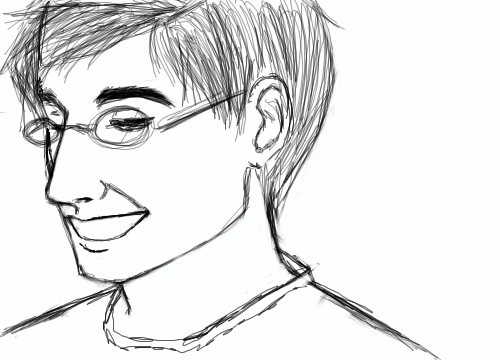 Fallin asleep halfway through a drawing and remembering it nine hours later. Laaaaawl. He was in my dream and had a big smile.