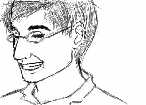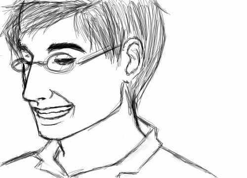 Fallin asleep halfway through a drawing and remembering it nine hours later. Laaaaawl. He was in my dream and had a big smile.