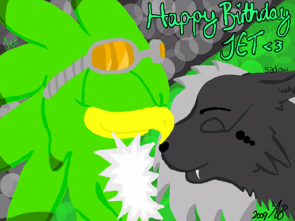 A birthday prezzy for an awesum friend ov mine.. : ) Right I shuld rly puts an explanation here tooz. So um, (when it's finished) It wil hav Jet The Hawk (representing mah friend) and my OC Sadow - tht's not a typo btw (representing me) and they wil sorta be lyk hugging...but not hugging...idk lolz, showing affection for each uther XD.