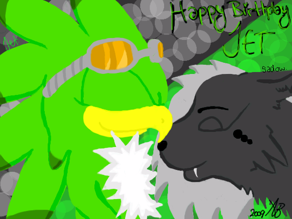 A birthday prezzy for an awesum friend ov mine.. : ) Right I shuld rly puts an explanation here tooz. So um, (when it's finished) It wil hav Jet The Hawk (representing mah friend) and my OC Sadow - tht's not a typo btw (representing me) and they wil sorta be lyk hugging...but not hugging...idk lolz, showing affection for each uther XD.