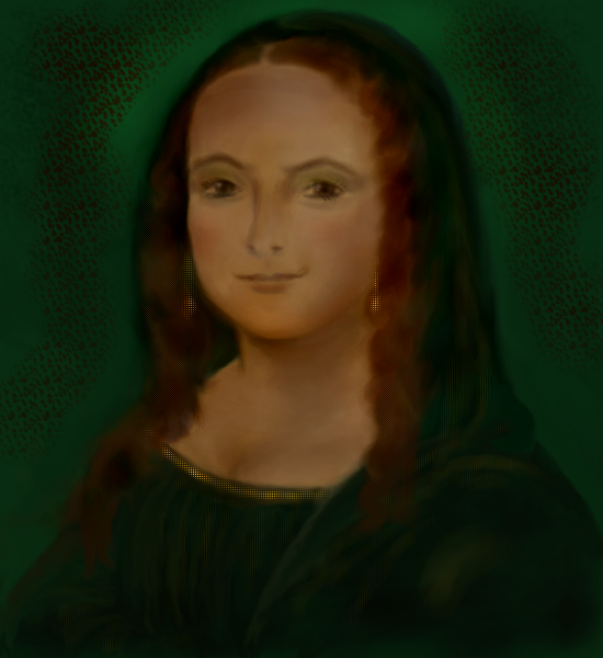 Well....this draw started out to be a "Botero" version of Mona Lisa...as in "version one" of this draw......but I couldn't stand looking at it, with that big face......so I tried changing it to look more like Mona Lisa should look.....but I couldn't get her to look like Mona Lisa.....so I "morphed" her into Mona Lisa's little sister, and named her "Magdalena"....hahahaaa!! I'm still not finished with this pic......I'm having trouble getting her skintone blended and shaded correctly....that's always a problem for me. I'll keep working on it......maybe I'll get her to look better. "Hmmmmm".....I wonder if Mona Lisa really did have a sister named Magdalena....."lol".....I'll have to google that....:D Well.....I'm posting this as "finished"....I tried my best to get her skintone right.....I hope I did ok. :)