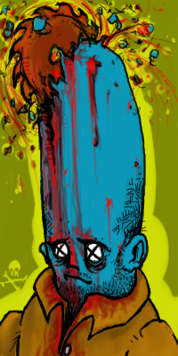 Nice colors. Remind me of bruises. It'll take all day for that saw to cut through his dome.