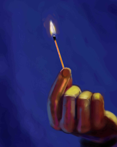 Adore the colors, very painterly. And the contrast on the hand and flame really make everything come alive ^-^