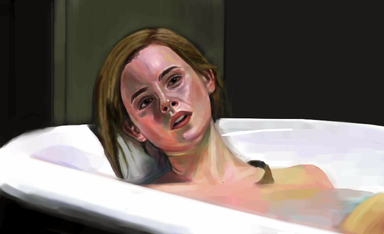 Let me guess. The hair on her shoulder and the water?