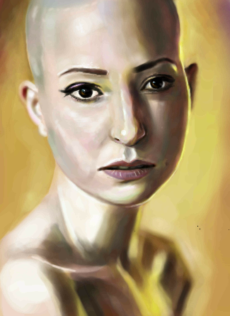 This drawing brings back sad memories for me, with green eyes thinner lips and tears down her cheeks, this would be me around 8 months ago after so much chemo and radiation :( I am getting my hair back now Thank God :) Great drawing.