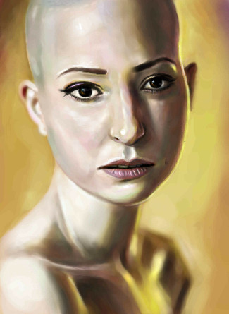 This drawing brings back sad memories for me, with green eyes thinner lips and tears down her cheeks, this would be me around 8 months ago after so much chemo and radiation :( I am getting my hair back now Thank God :) Great drawing.