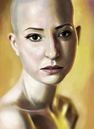 This drawing brings back sad memories for me, with green eyes thinner lips and tears down her cheeks, this would be me around 8 months ago after so much chemo and radiation :( I am getting my hair back now Thank God :) Great drawing.