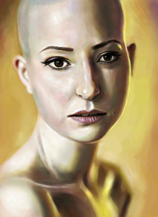 This drawing brings back sad memories for me, with green eyes thinner lips and tears down her cheeks, this would be me around 8 months ago after so much chemo and radiation :( I am getting my hair back now Thank God :) Great drawing.
