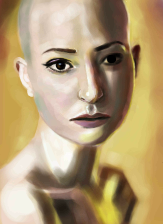 This drawing brings back sad memories for me, with green eyes thinner lips and tears down her cheeks, this would be me around 8 months ago after so much chemo and radiation :( I am getting my hair back now Thank God :) Great drawing.