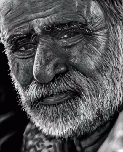 He gives me the willies...seems like we should see more of his nose, like part of the other nostril. Scary looking man well done.