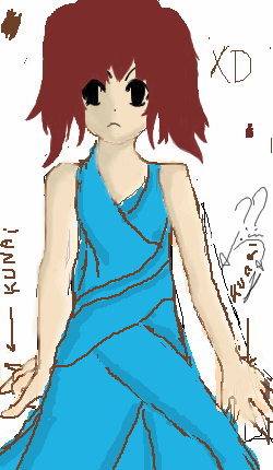 Brother helped design:"A short girl with a strong build and fairly short arms and legs." "Somewhat ninja-like in a dress and looks close to a MMORPG chara." "Short wavy hair in pigtail and a determined look on her face. +_= I have no idea how to get RID of those shaky lines! It will keep haunting me... The only reason I used oekaki was because its easier to use the tools for color just so I can make it go quicker. Bunny san, leave me some stuff to color too please (Im never using oekaki again unless im doodling!)