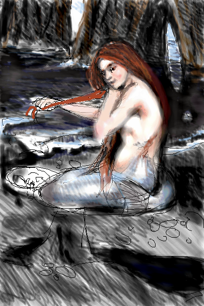 Wow! This is a really great draw.....I love how you did all the detail....especially all those little stones.....and I like the colors. I think the mermaid is a little bit chubby, but I guess she is supposed to look that way. Awesome pic! :)