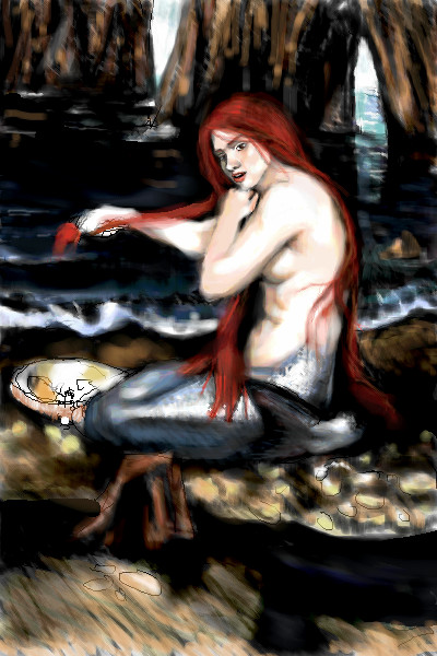 Wow! This is a really great draw.....I love how you did all the detail....especially all those little stones.....and I like the colors. I think the mermaid is a little bit chubby, but I guess she is supposed to look that way. Awesome pic! :)