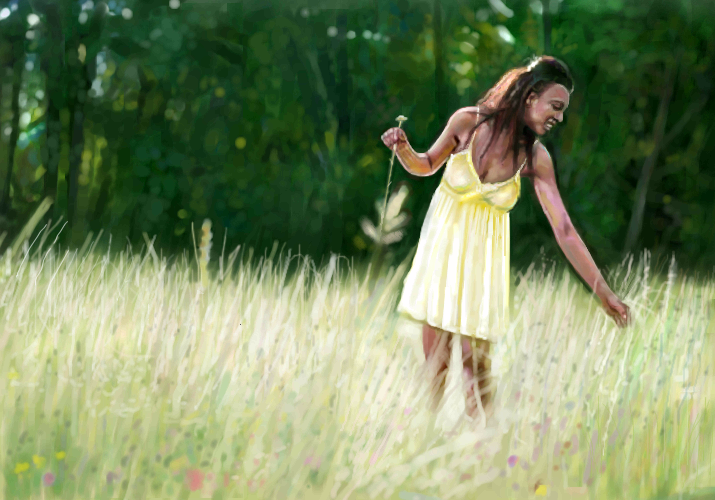 ABSOLUTELY beautiful;wow.yeah,i'm not good at layers either,and i tried.love the field,grass,reflection of green on the flesh,delicate lighting..sigh.yummy.