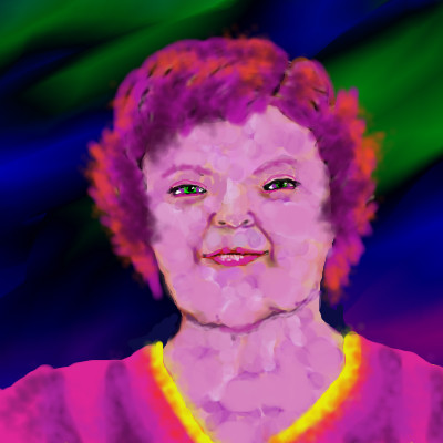thanks, this is a self portrait except for the purple skin and hair, hey, maybe I should try coloring my hair that color