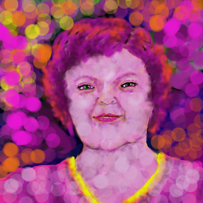 thanks, this is a self portrait except for the purple skin and hair, hey, maybe I should try coloring my hair that color