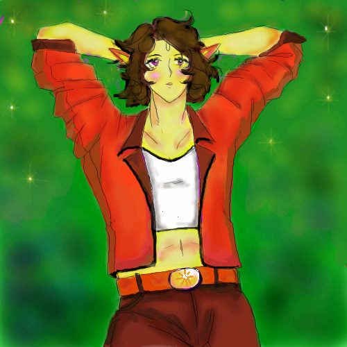 I like the green background a lot. I would never have thought to make him brunette ^^