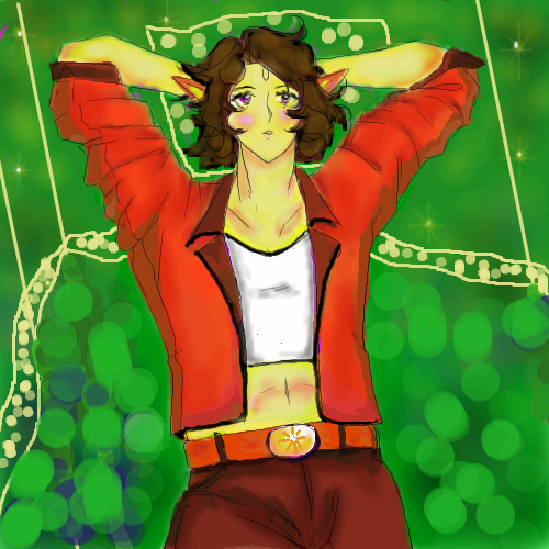 I like the green background a lot. I would never have thought to make him brunette ^^