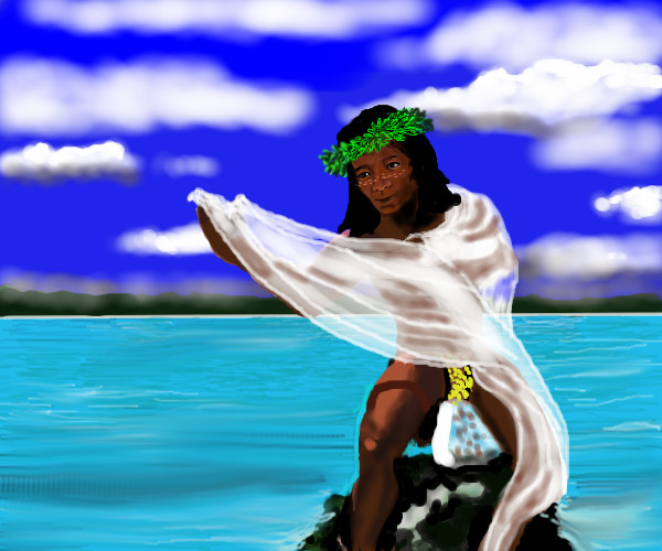 "Wow"!!!! This is really cool......he looks like a native Tahitian......I really like that net that he's holding. I think he's gonna catch a "ton" of fish! Nice draw.....:)