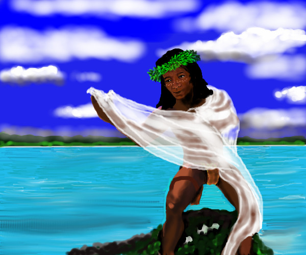 "Wow"!!!! This is really cool......he looks like a native Tahitian......I really like that net that he's holding. I think he's gonna catch a "ton" of fish! Nice draw.....:)
