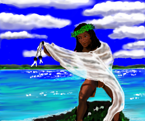 "Wow"!!!! This is really cool......he looks like a native Tahitian......I really like that net that he's holding. I think he's gonna catch a "ton" of fish! Nice draw.....:)