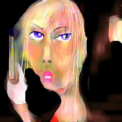 interesting. i like the disproportionate head and the hint of figure and lighting in back. Odd :)