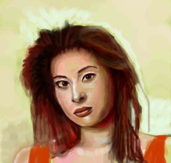 I like the purple between her hair and forehead. The green on the face looks a bit misplaced.