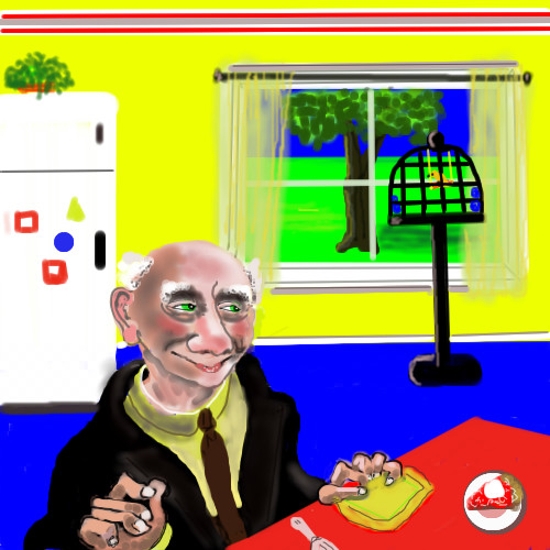 I couldn't resist this cartoon character. He looks like he has been losing weight and his neighbor lady has brought him some of his favorite desert to eat