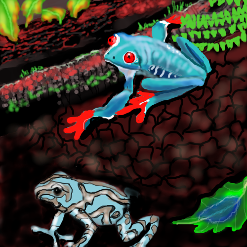 Such interesting things aren't they? I have two African dwarf frogs. They're so small, like maybe 1" & 1/4" when stretched out! They live they're full life (2-3 yrs and some up to 10yr) in fresh spring water. So easy to care for! Your draw captures these poision pushers nicely! Amazing how colorful many of them are! Kinda like they're sayin, "ya! Aren't I pretty?? Go ahead! Touch me!!!" bwaaahahahaaaa ribit =)