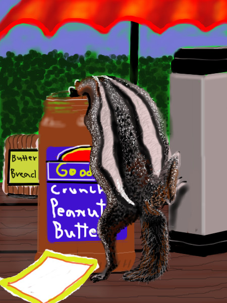 thank you for catching that, yes, thank you davinci, I always look forward to your comments as I do others, this was drawn from a photo and it would have been fun to see the chipmonks face after he had it in the peanut butter jar