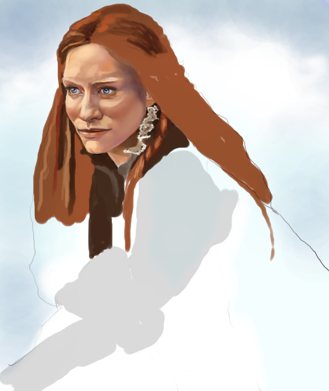 was 55 when, astride her horse, she watched the British Navy defeat the Spanish Armada. Cate Blanchett was in her 30's when she did the movie. This is really frustrating because every couple of minutes the drawing tools just stop working for about 10 seconds. I don't know if it's my computer or what but it sure makes drawing a pain in the butt. The real QE1 was swarthy with reddish hair and brown eyes, a hooked nose and thin lips.