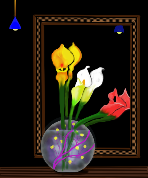 This is really very pretty......I like the way the flowers are reflecting in the mirror.....nice draw.....:)