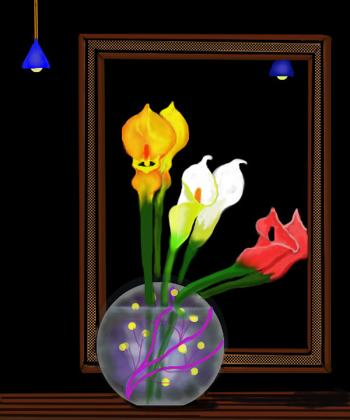 This is really very pretty......I like the way the flowers are reflecting in the mirror.....nice draw.....:)