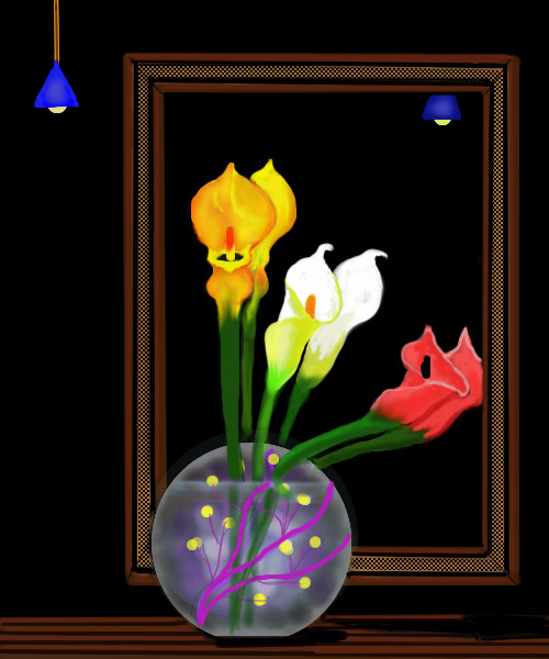 This is really very pretty......I like the way the flowers are reflecting in the mirror.....nice draw.....:)