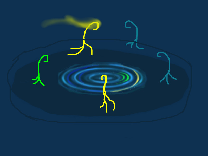 I can't really see a lakes of tears here.. are the colored roots tears joining the lake?