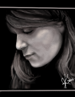 I like the softness of her face and harder/sharper lines in her hair. Beautiful!!