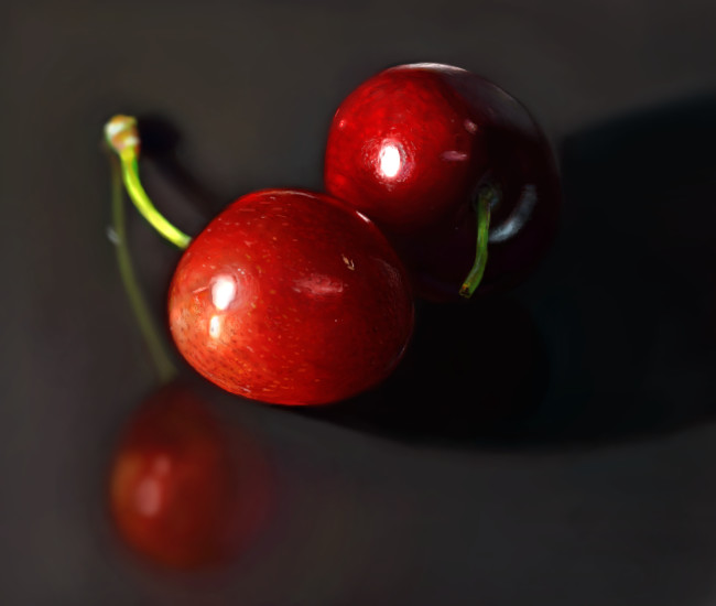 I agree......but the skin on these two cherries look very 'applish" to me.......it's a great pic though.....I luv both cherry pie and apple pie.....so it doesn't matter to me if they are cherries or apples.....:)