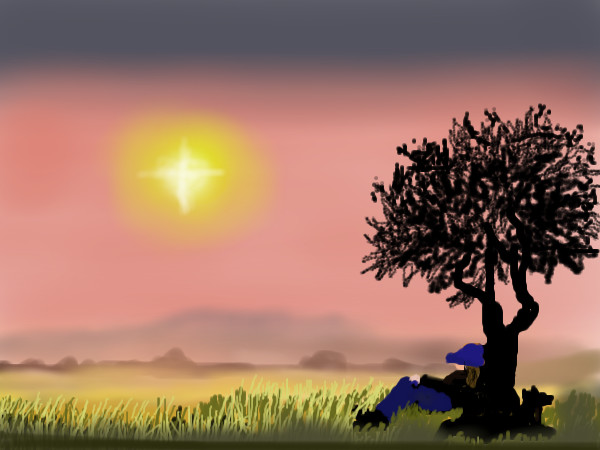 That's a cool looking tree, and I like the soft colors in the background.....nice draw!! :)