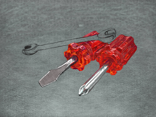 Mmmm, love the red plastic on the handles. It really shows that it is hardened, yet clear. Plus the coloring itself against the silver really pops in the drawing. Love the subject of the drawing..it is different and interesting. Who'd screwdrivers would do that, but it does.